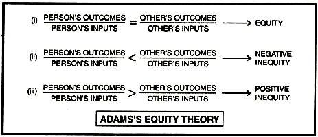 As per the equity theory of J. Stacey Adams, people are motivated by their beliefs about the reward structure as being fair or unfair, relative to the inputs. People have a tendency to use subjective judgment to balance the outcomes and inputs in the relationship for comparisons between different individuals. Accordingly: